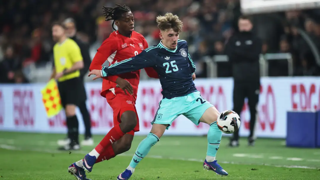Rather than playing cautiously — as many teenagers might on their senior international debut — the 18-year-old attacked defenders with confidence. His direct running stretched the Swiss defensive line, creating gaps that Germany had struggled to find earlier in the match.